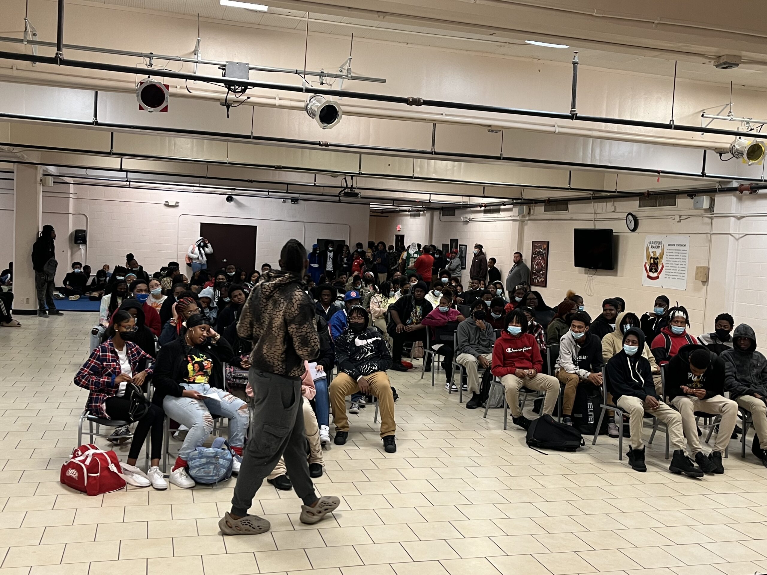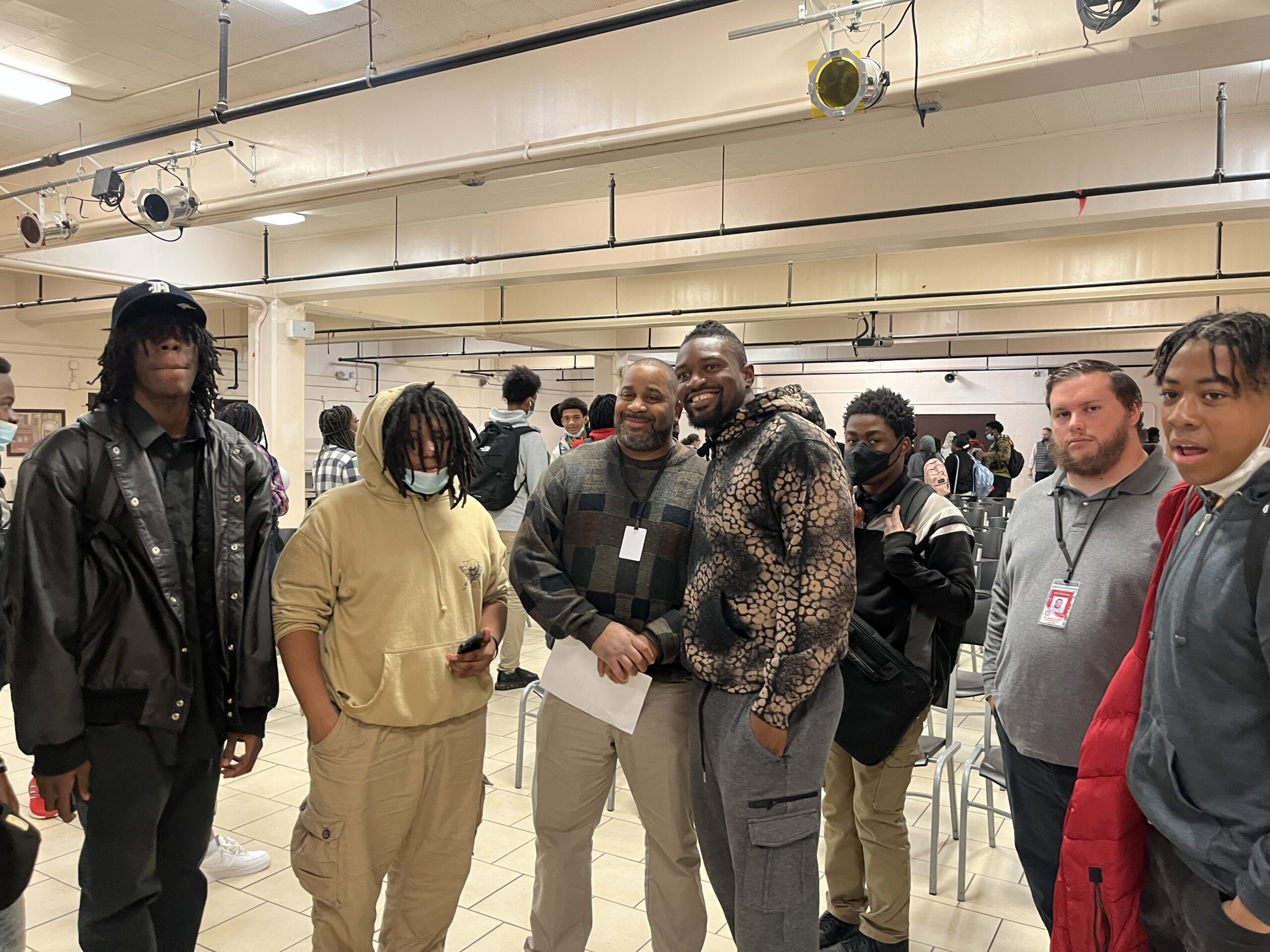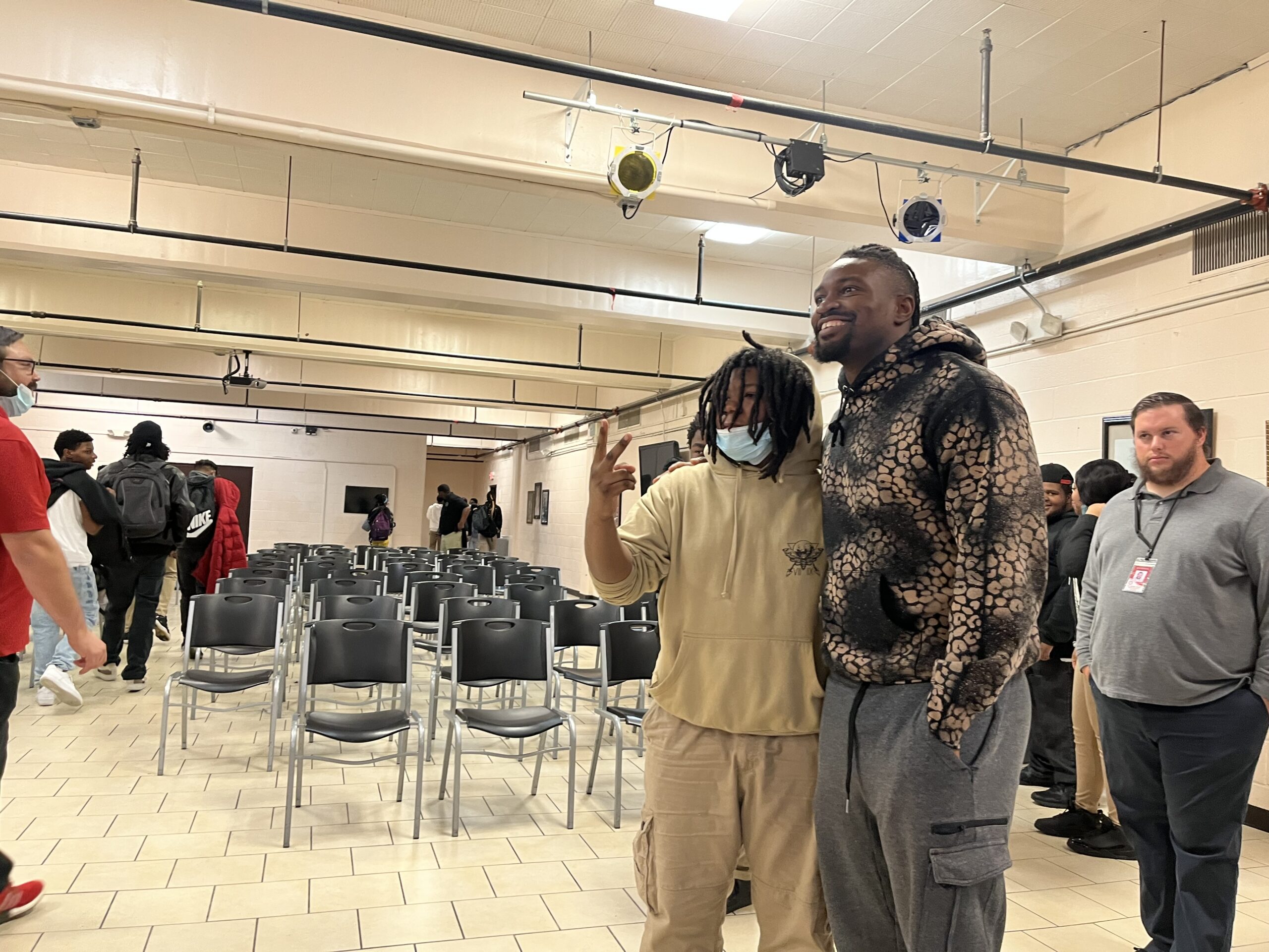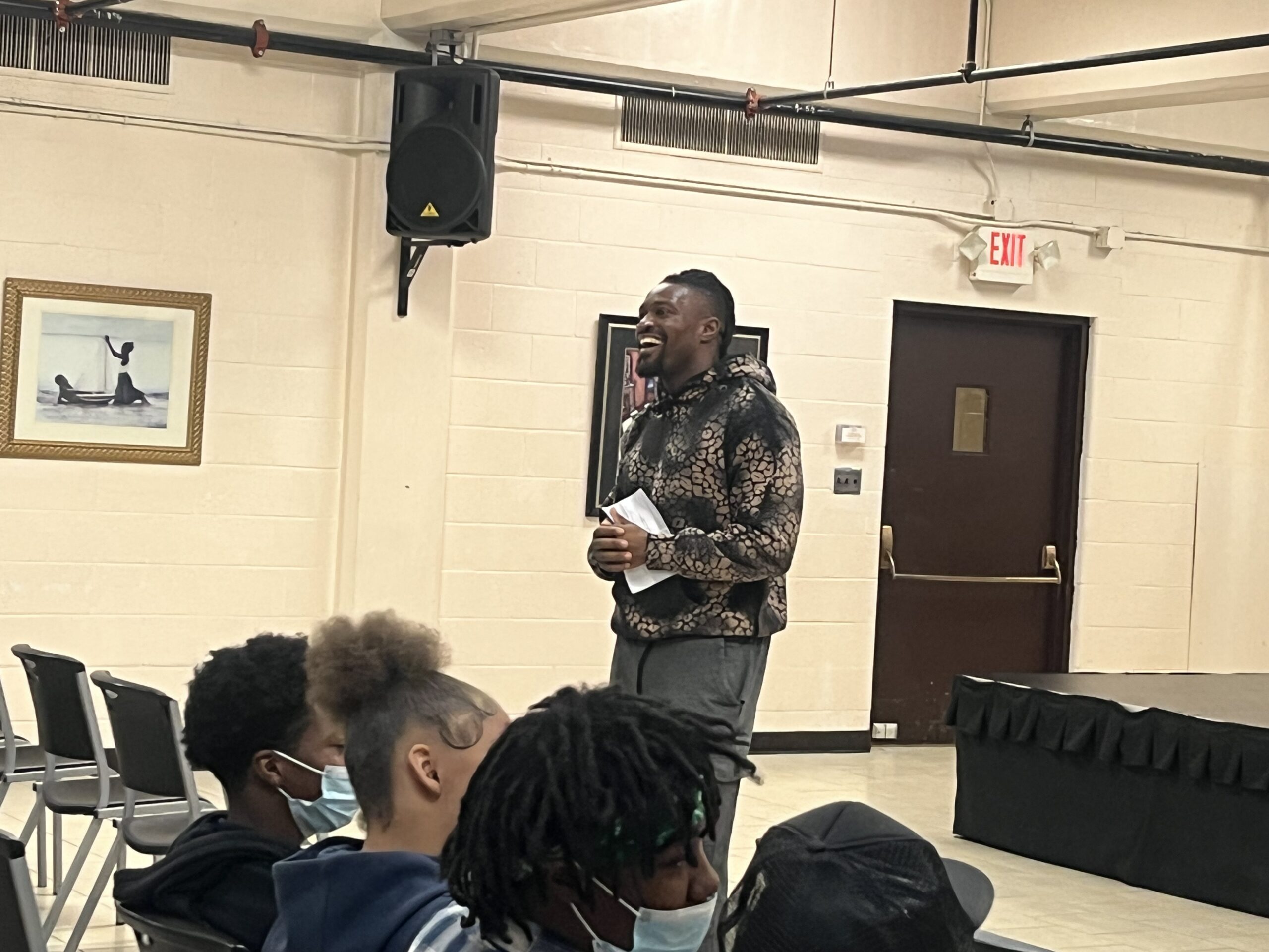 Cabinda clearly loved speaking with the high schoolers. His smile was contagious as he talked to them about his journey to the NFL. He had previously done Zoom calls with the students, but it was obvious that seeing him in person made a huge difference.