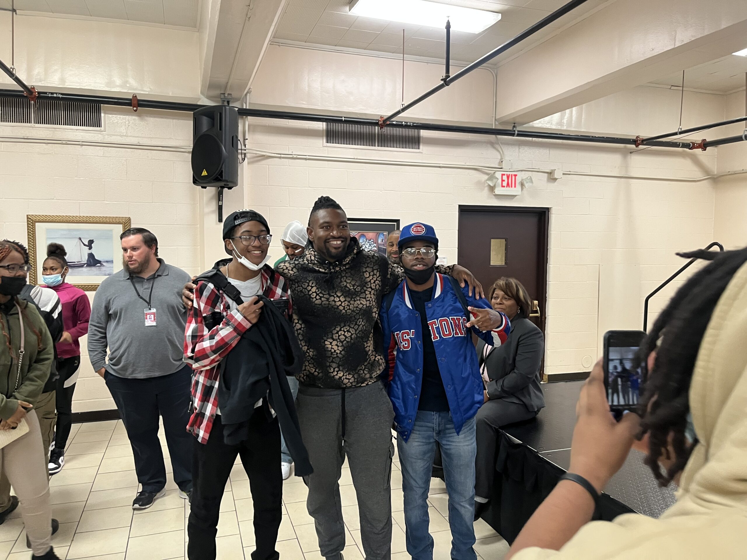 Cabinda, in partnership with Athletes for Charity, spent his Tuesday mentoring students at Old Redford High School in Detroit.