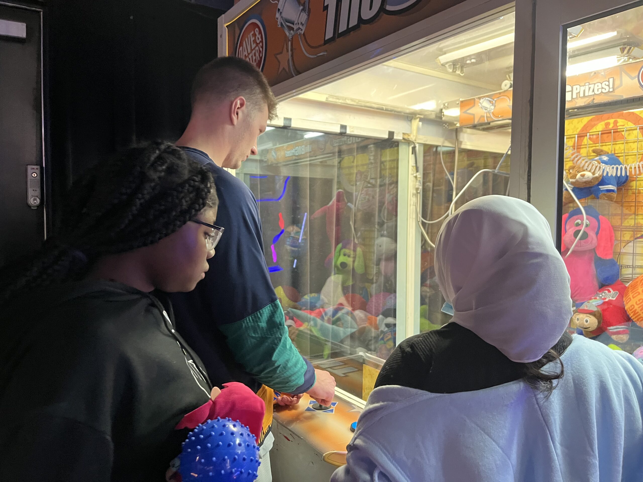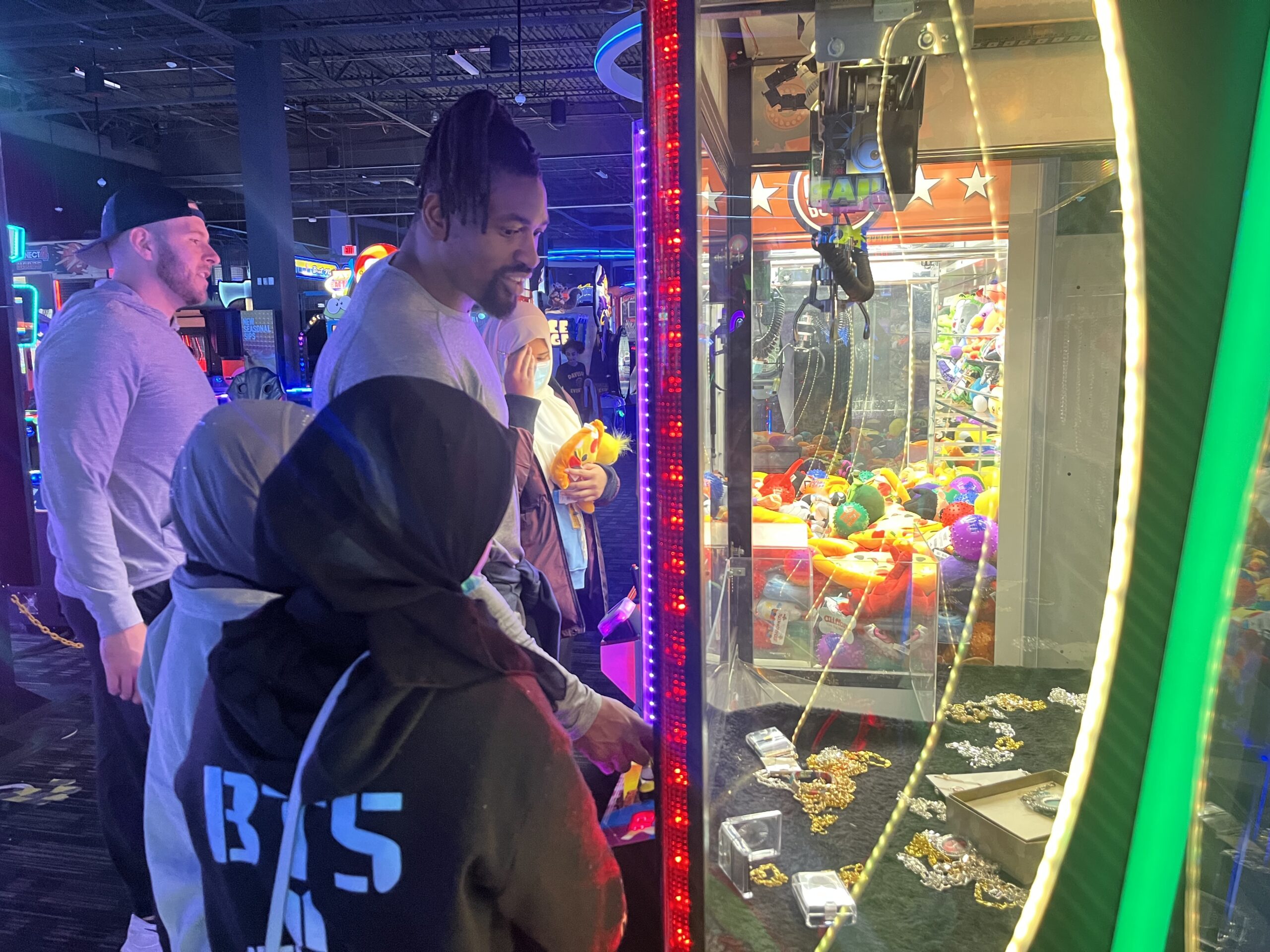 The students were thrilled when they walked through the doors eager to get started playing. Cabinda handed them all game cards that were fully loaded so they could play whatever games they wanted to play. Several of them even walked away with prizes from the fan-favorite claw machine.