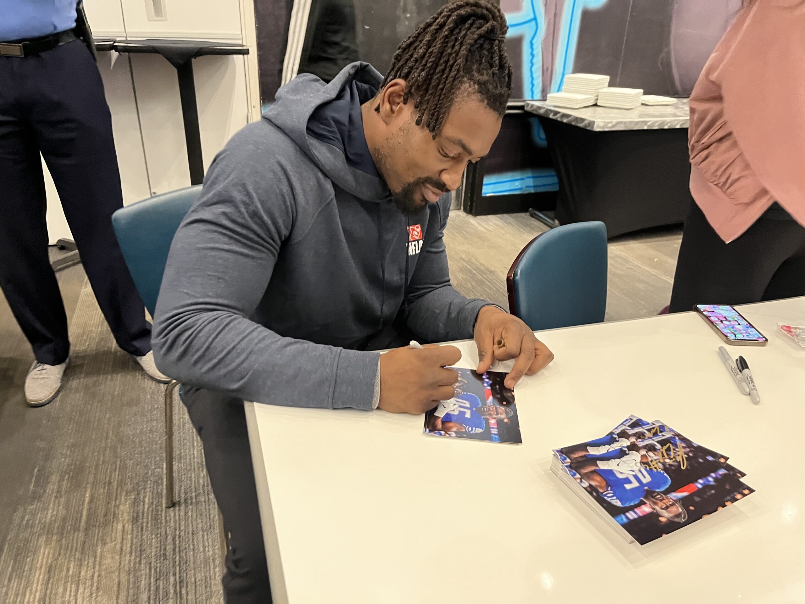 The fullback is no stranger to the students at Davison Elementary Middle School. He visits them frequently, whether it’s in person or via zoom, and lends a hand to make sure they feel seen, heard, and loved. Cabinda shares stories, donates books, reads to students, mentors students, and communicates to them the importance of getting a good education. He says it’s important to be present and support these students on a daily basis.