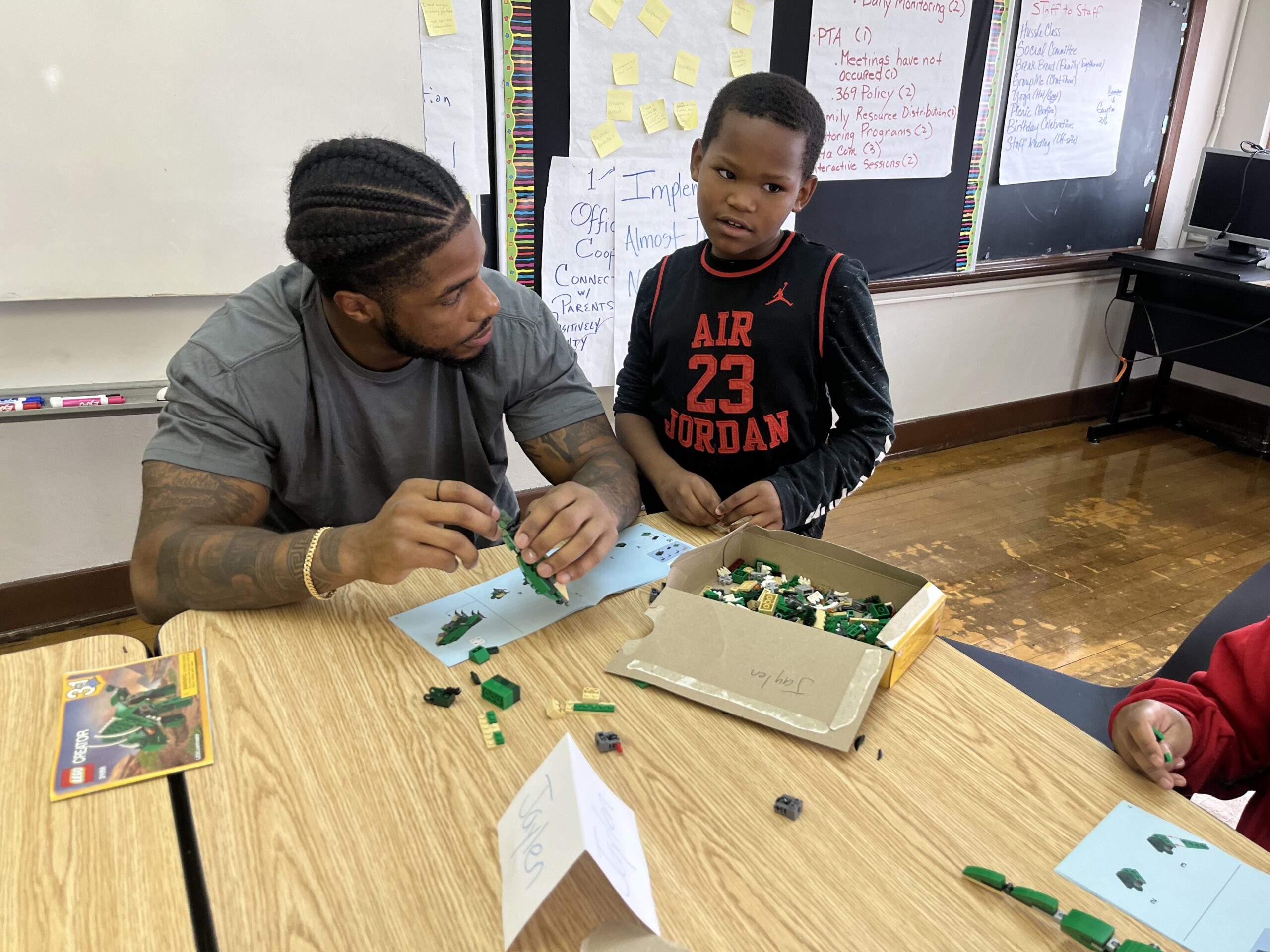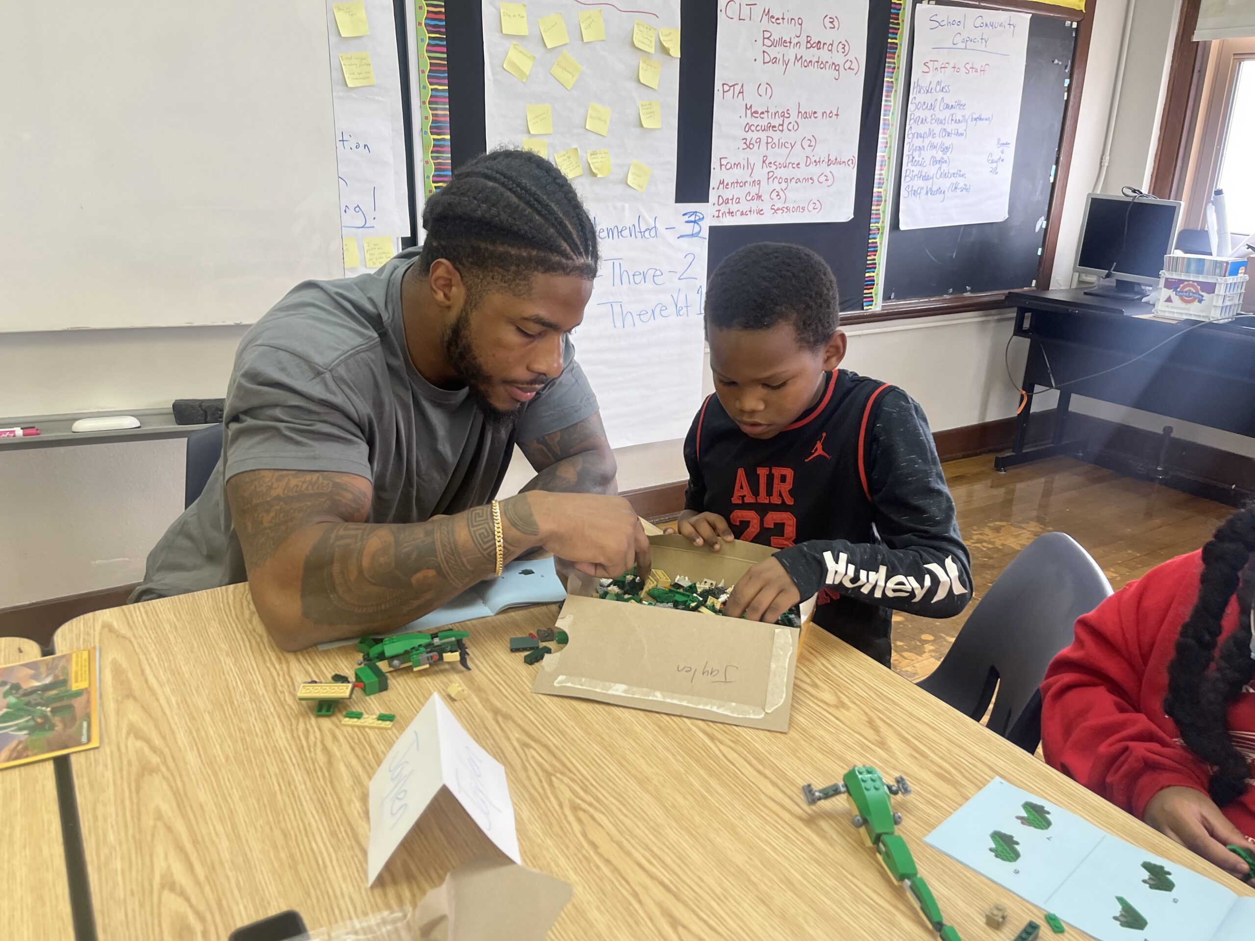 Daly and his wife, Monica, dedicated their afternoon to creating memories, smiles, and laughter with students in Detroit. They were joined by linebacker Chris Board to help build dinosaurs out of LEGOs. Each student received their own LEGO set and could choose from three different dinosaur builds.