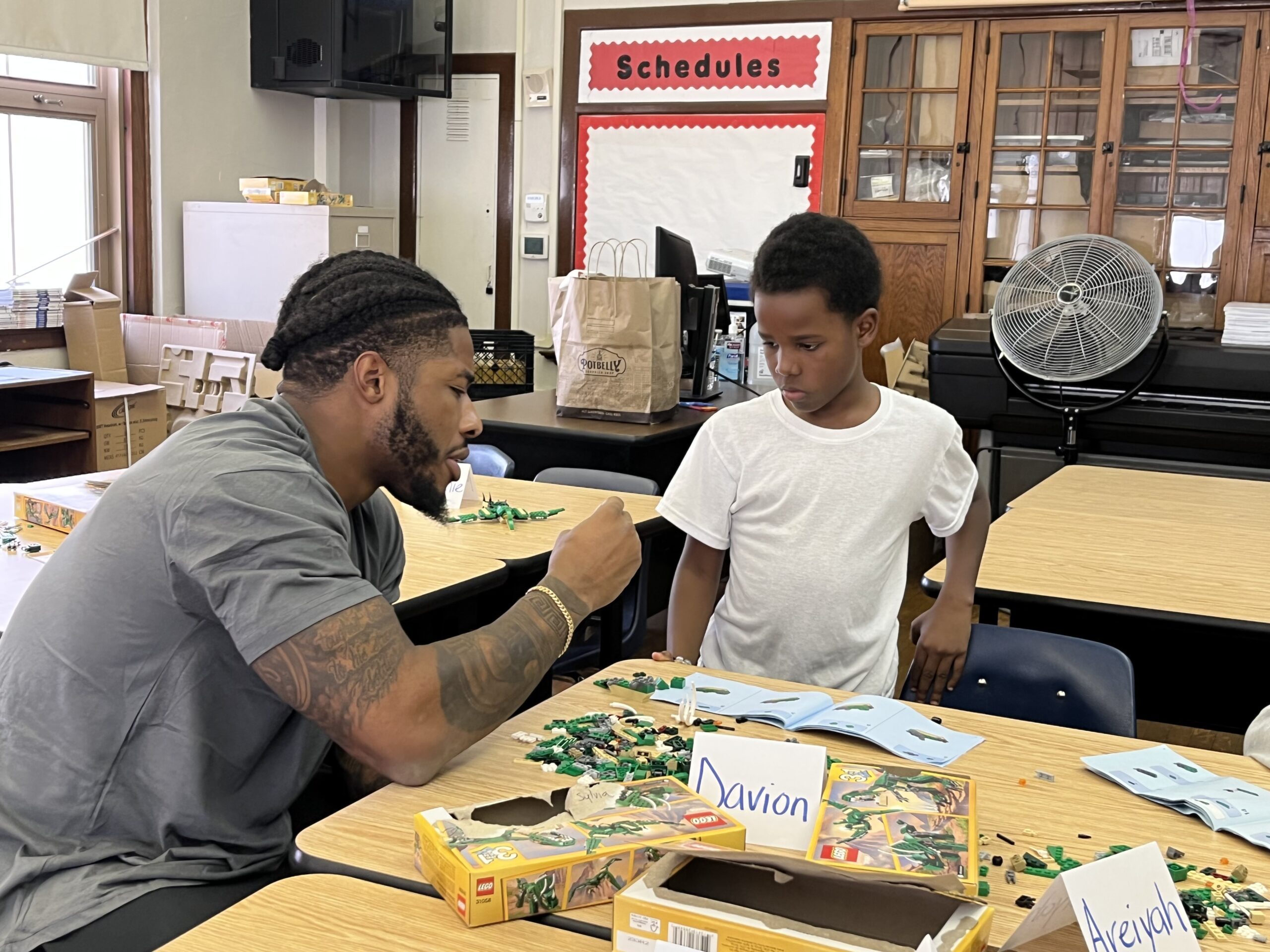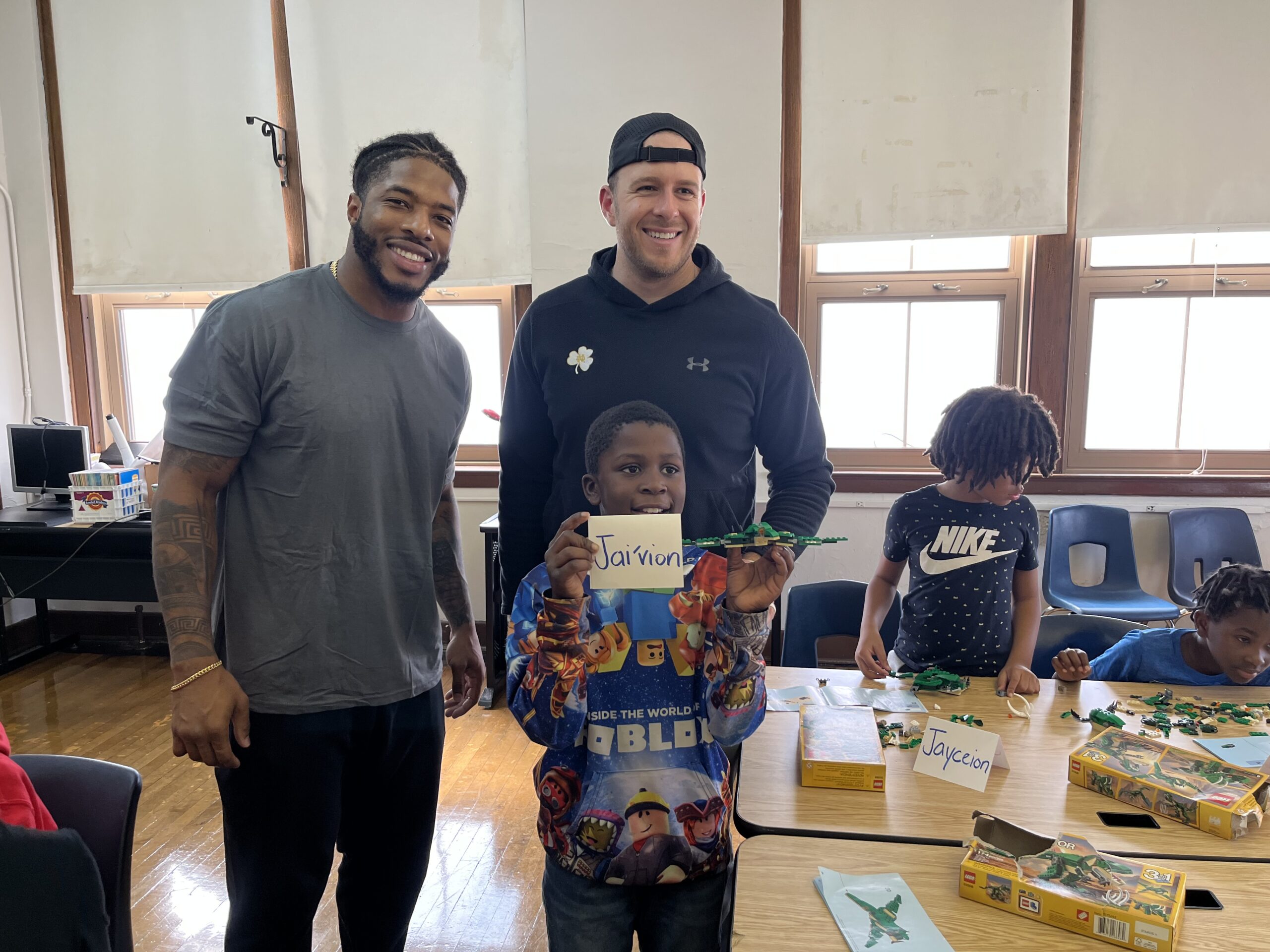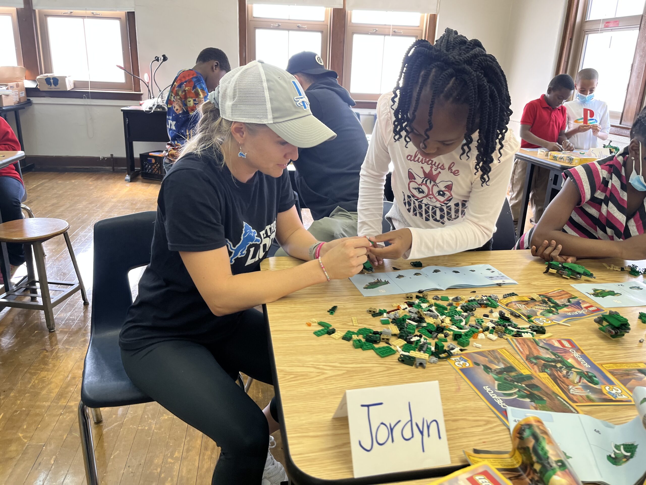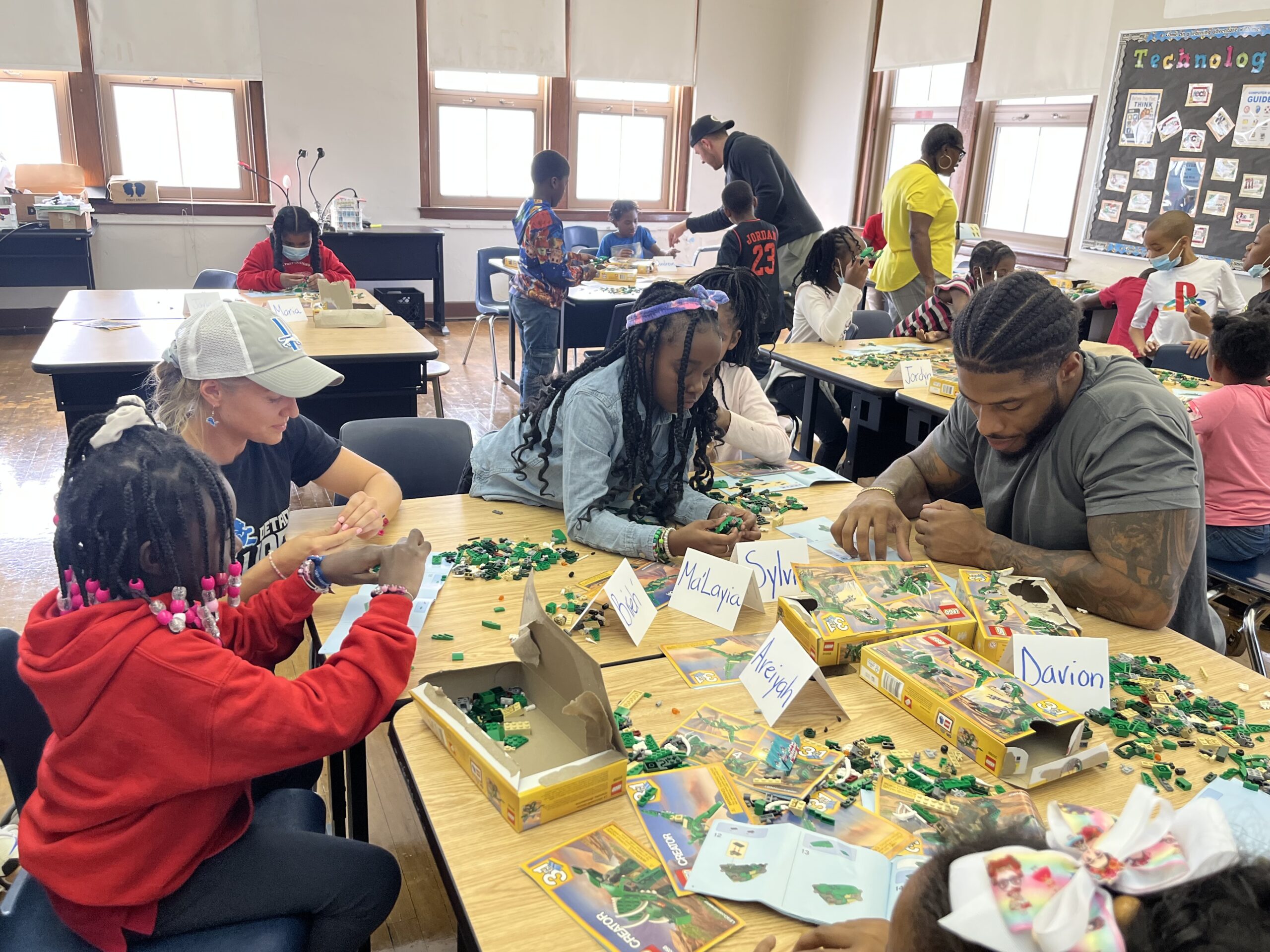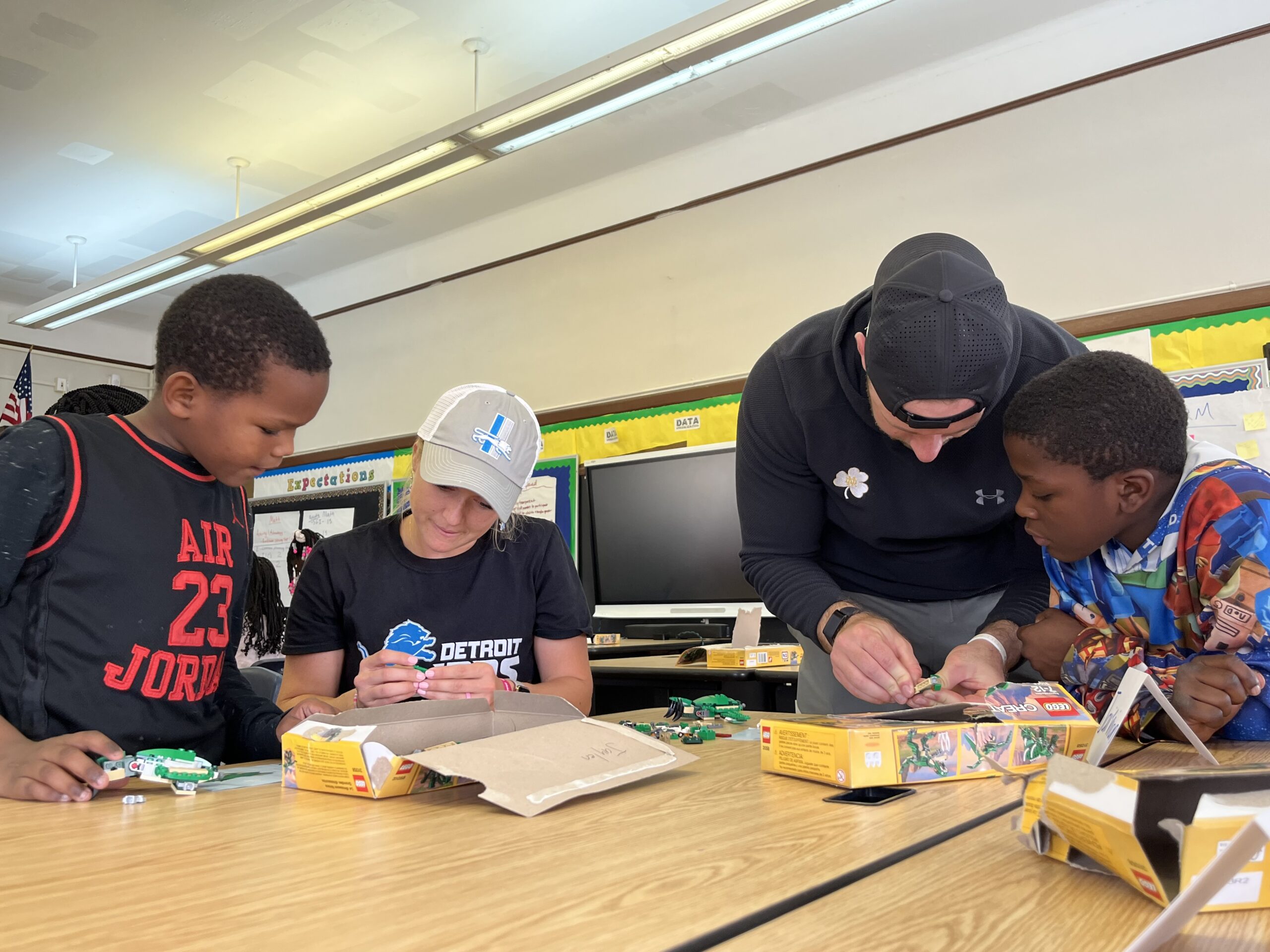 The three roamed the room helping students follow the directions to build their creations. While it was obvious the students were challenged, they were ecstatic to receive help from Detroit Lions, and even happier when they were able to complete the assignment.