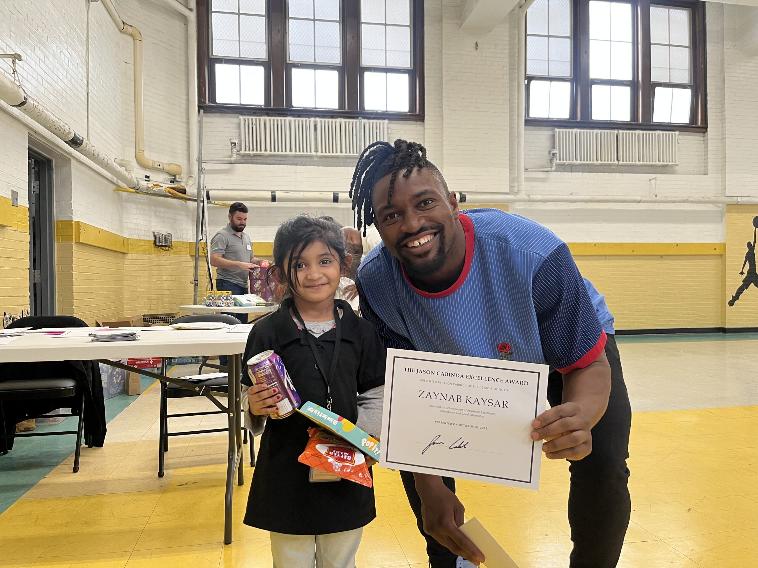 From volunteers to Principal Coleman, to the Detroit Lions players and students, smiles and laughter rang through the room. Cabinda, Boyle, and Oruwariye left a lasting impact that these students will remember forever.