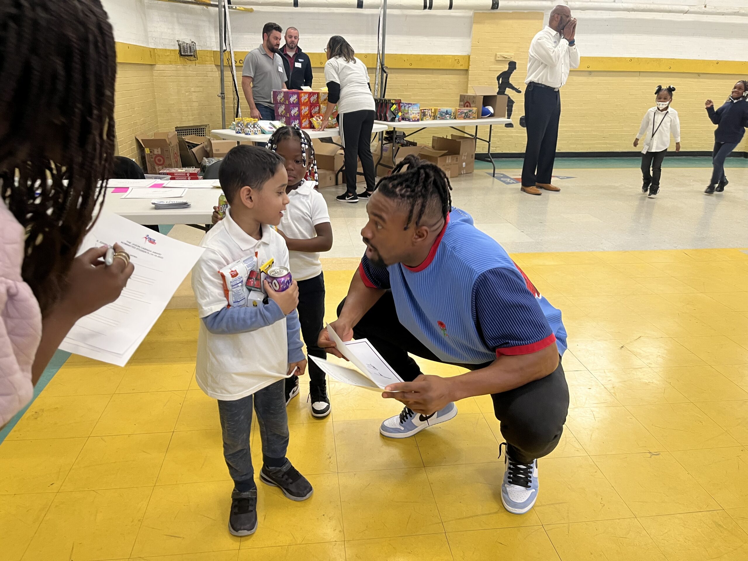 Jason Cabinda, Tim Boyle, and Amani Oruwariye dedicated their Tuesday afternoon to students at Davison Elementary-Middle School. Cabinda, along with Athletes for Charity, put together a day full of smiles, prizes, and fun for the kids. They played several different games with the students, letting them know they are seen, heard, and loved.