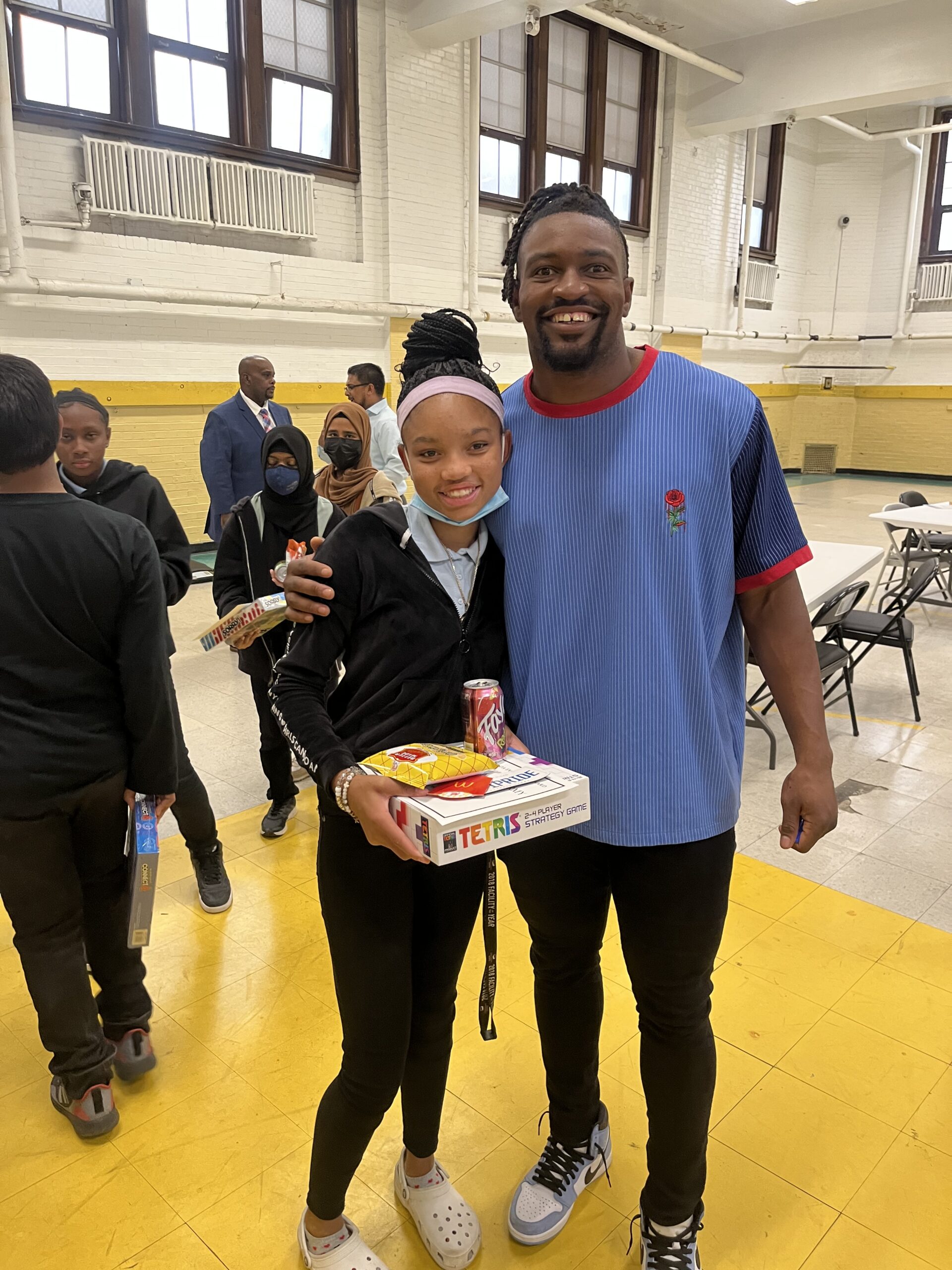 Cabinda is no stranger to Davison students. Earlier this year, he provided all the students at this school with books to help teach them about STEM. Today, he gifted them different games and excellence certificates, thanking them for trying hard and showing up every day to get better.