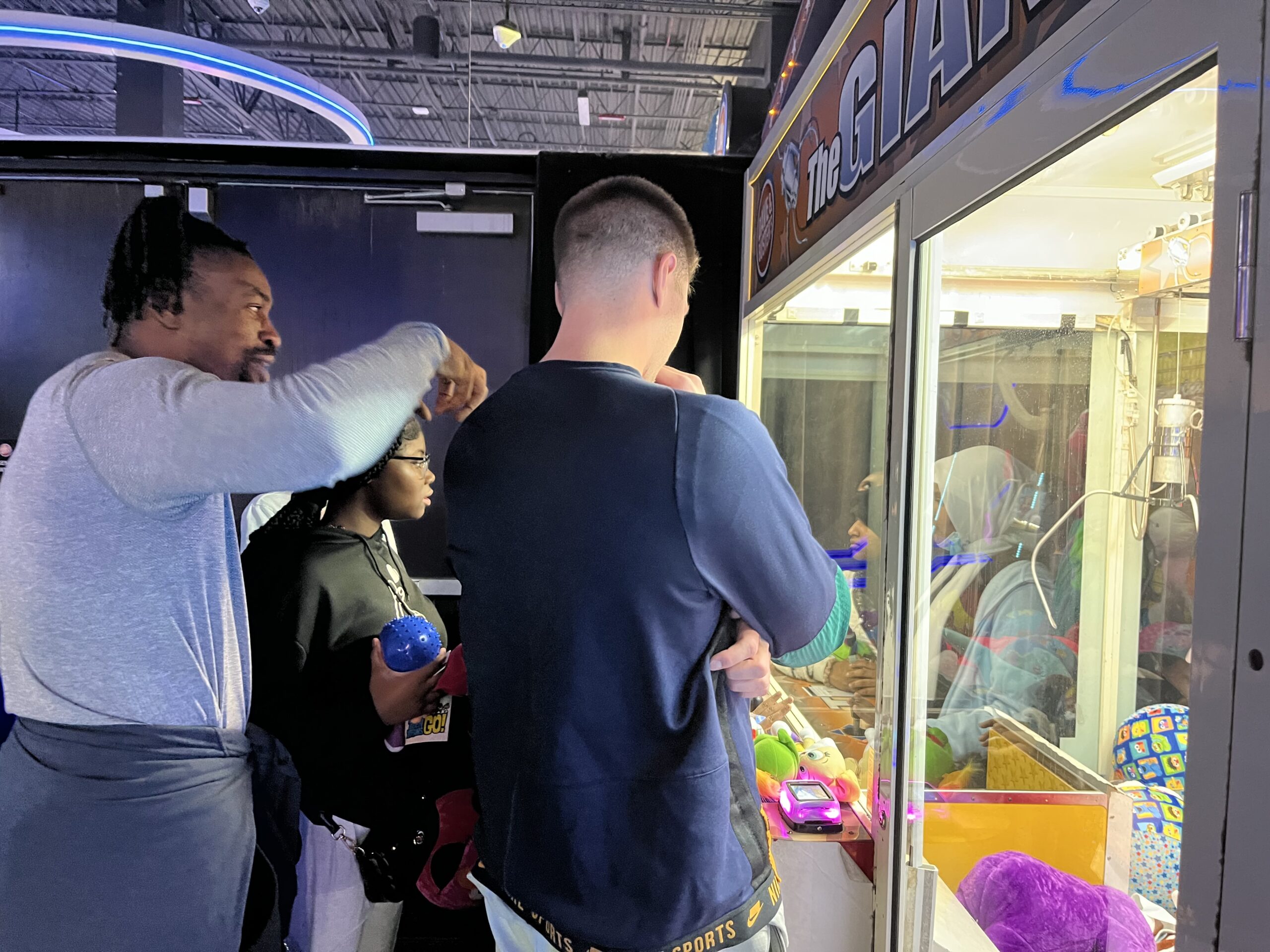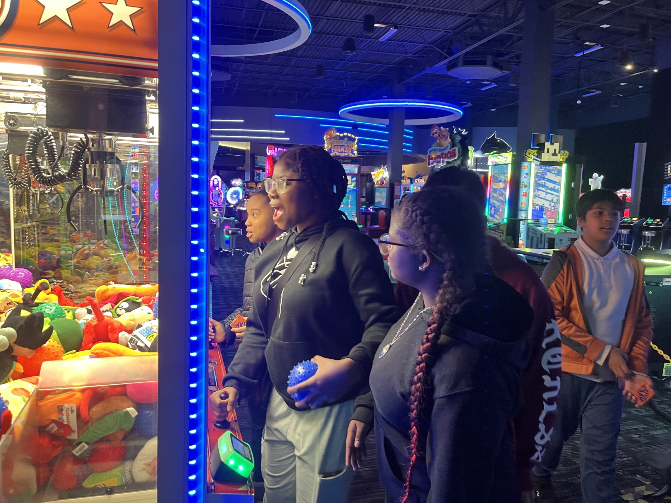 The students were thrilled when they walked through the doors eager to get started playing. Cabinda handed them all game cards that were fully loaded so they could play whatever games they wanted to play. Several of them even walked away with prizes from the fan-favorite claw machine.