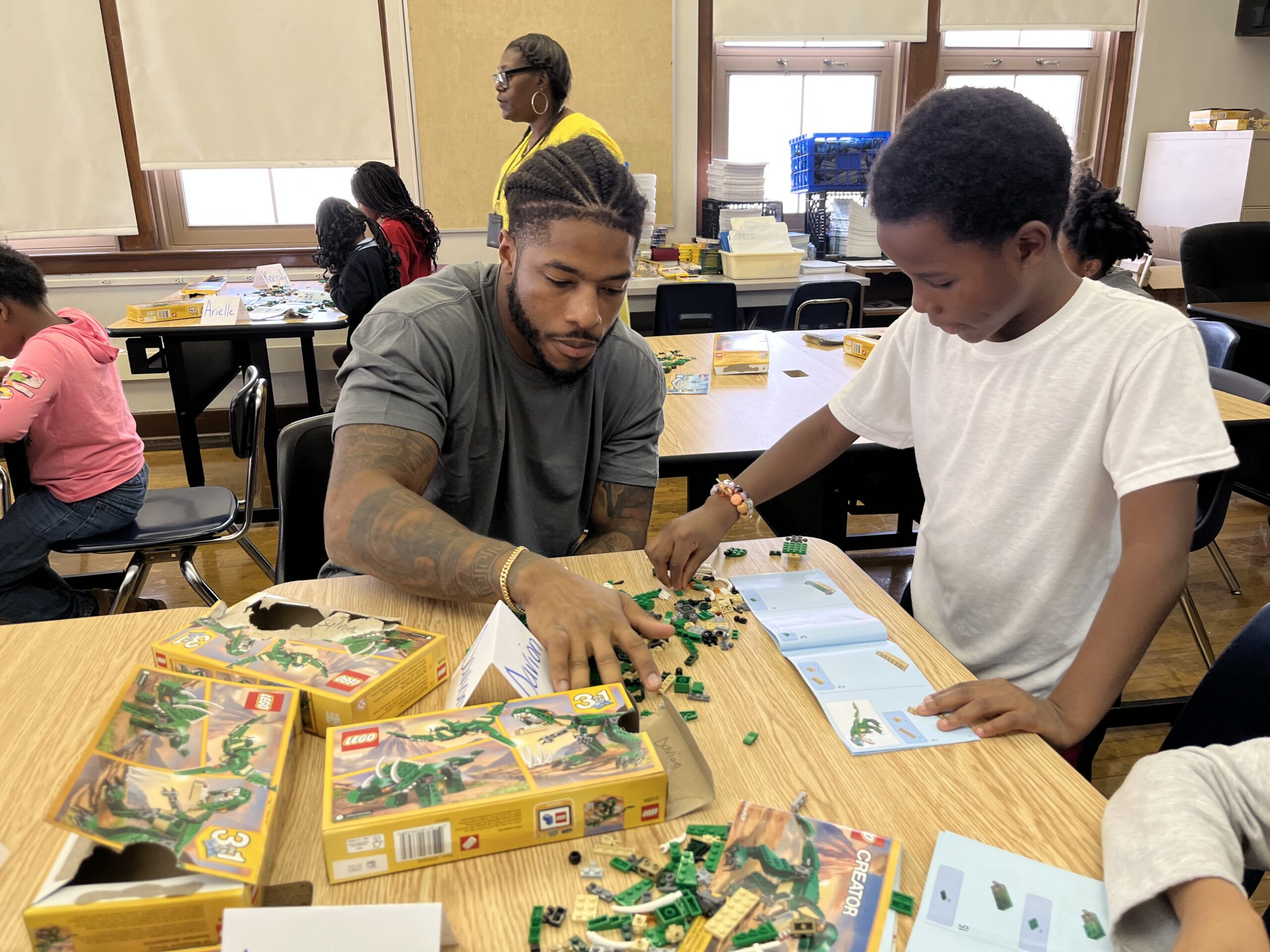 The three roamed the room helping students follow the directions to build their creations. While it was obvious the students were challenged, they were ecstatic to receive help from Detroit Lions, and even happier when they were able to complete the assignment.