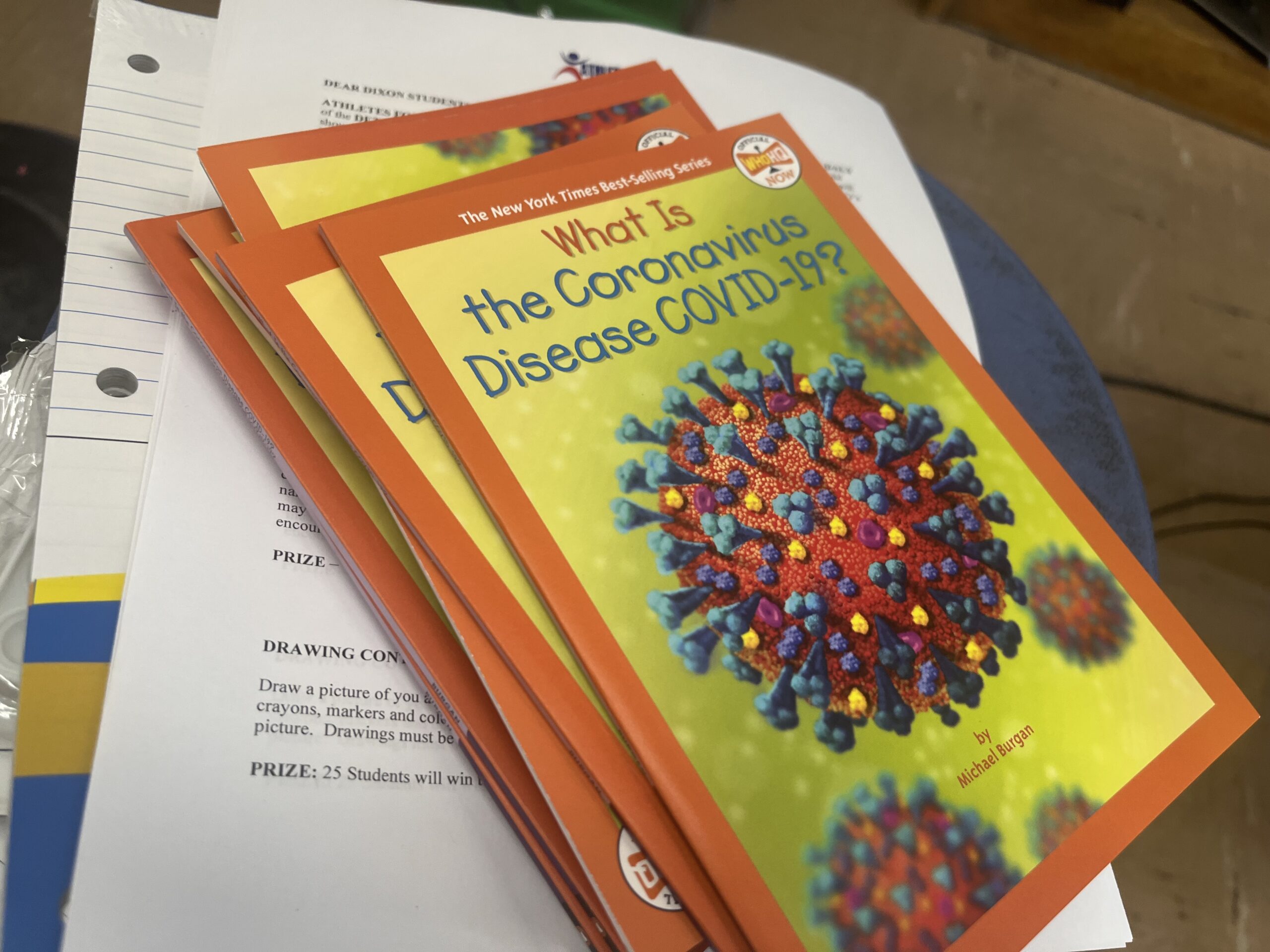 FB Jason Cabinda also joined Board as the assistant principal for the day. The two bounced from classroom to classroom and helped students learn about the Coronavirus.