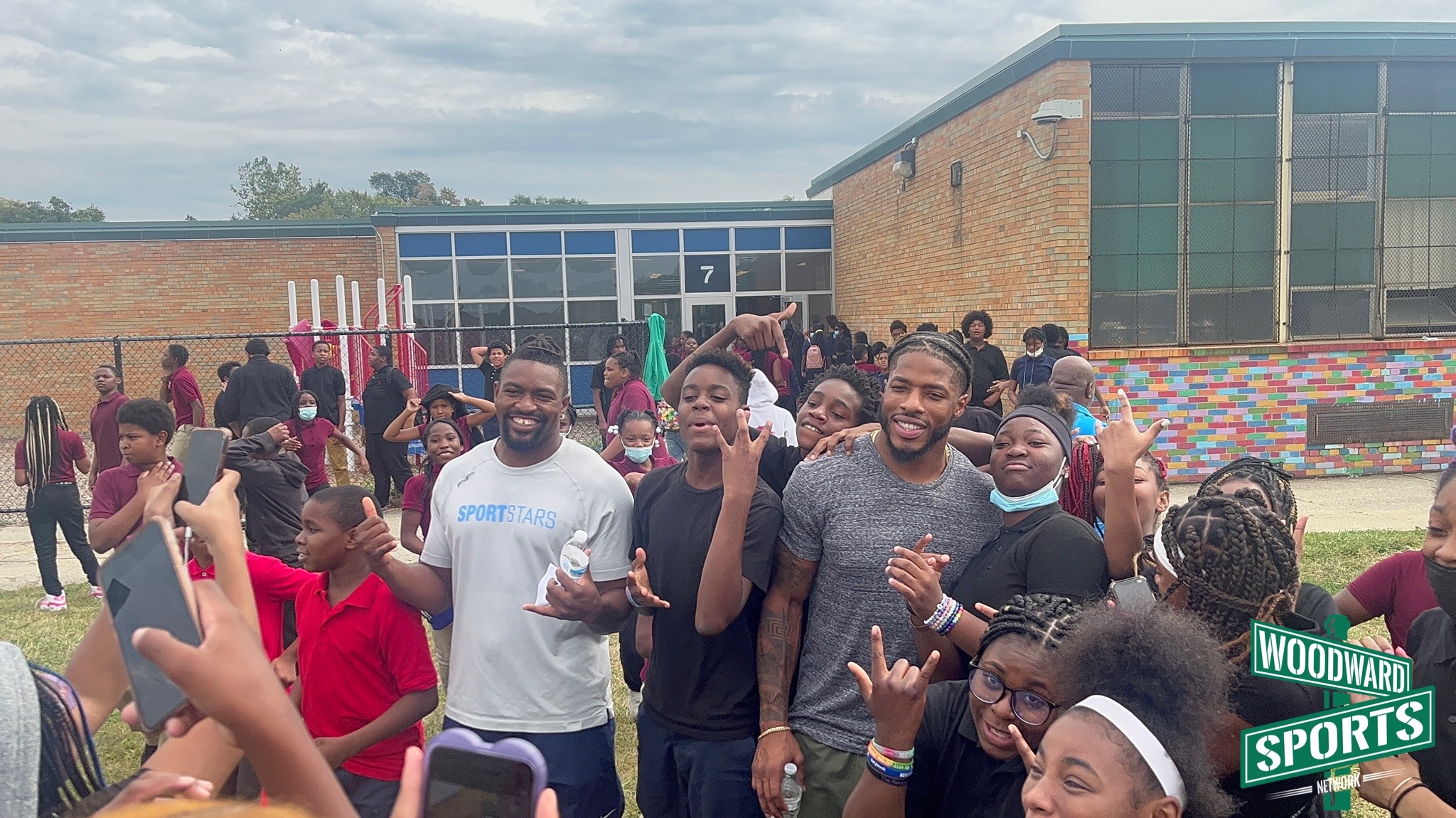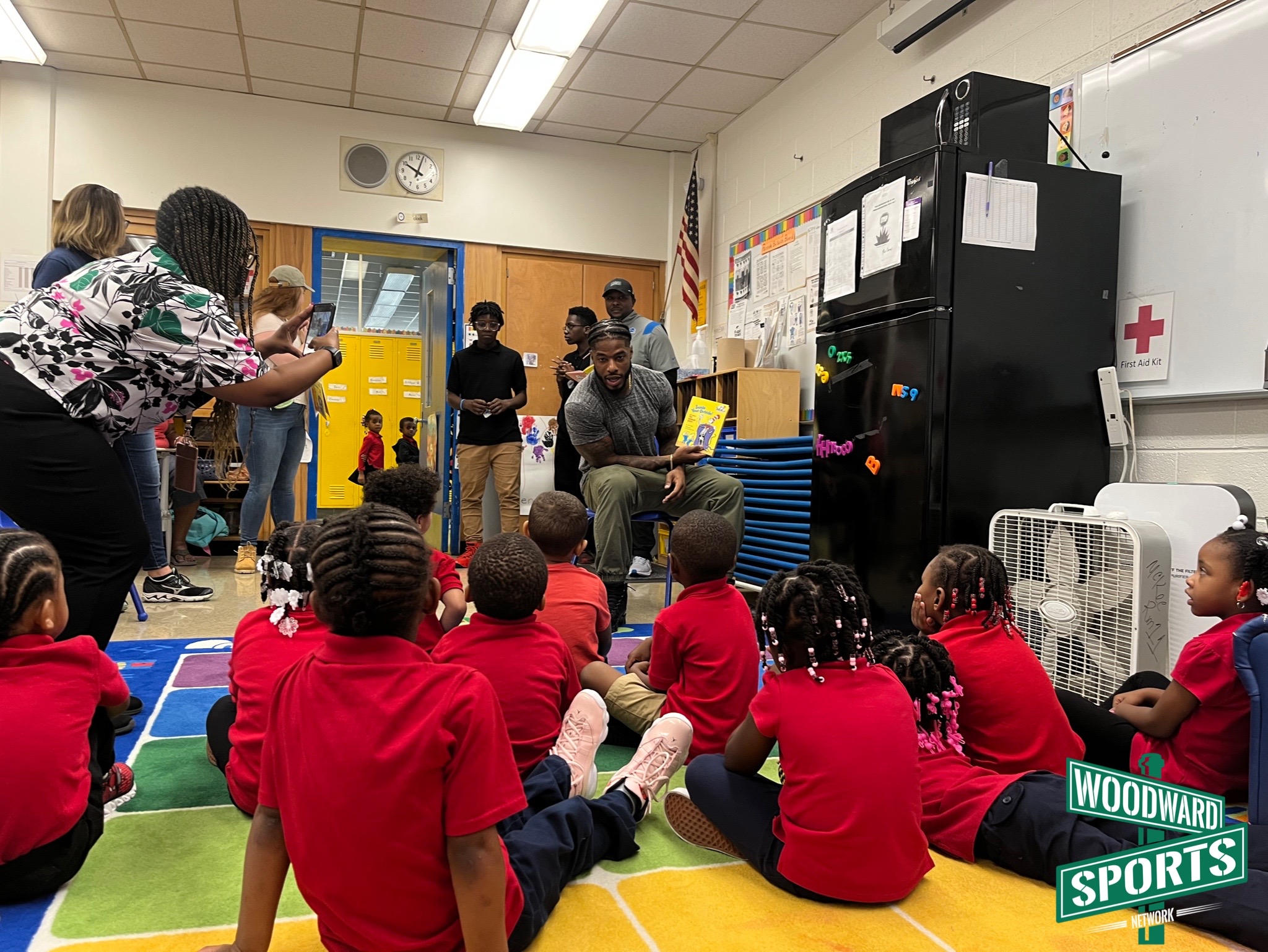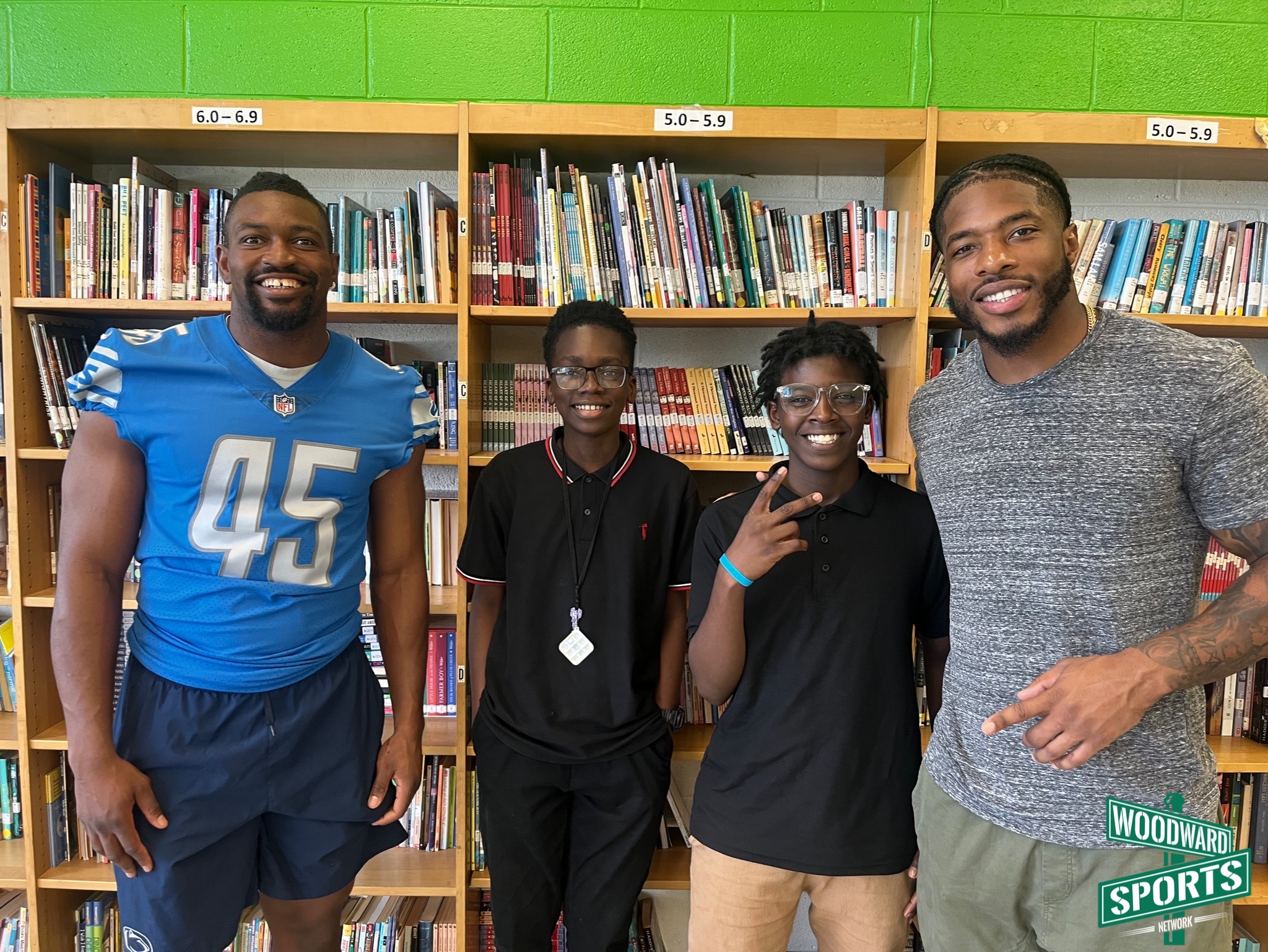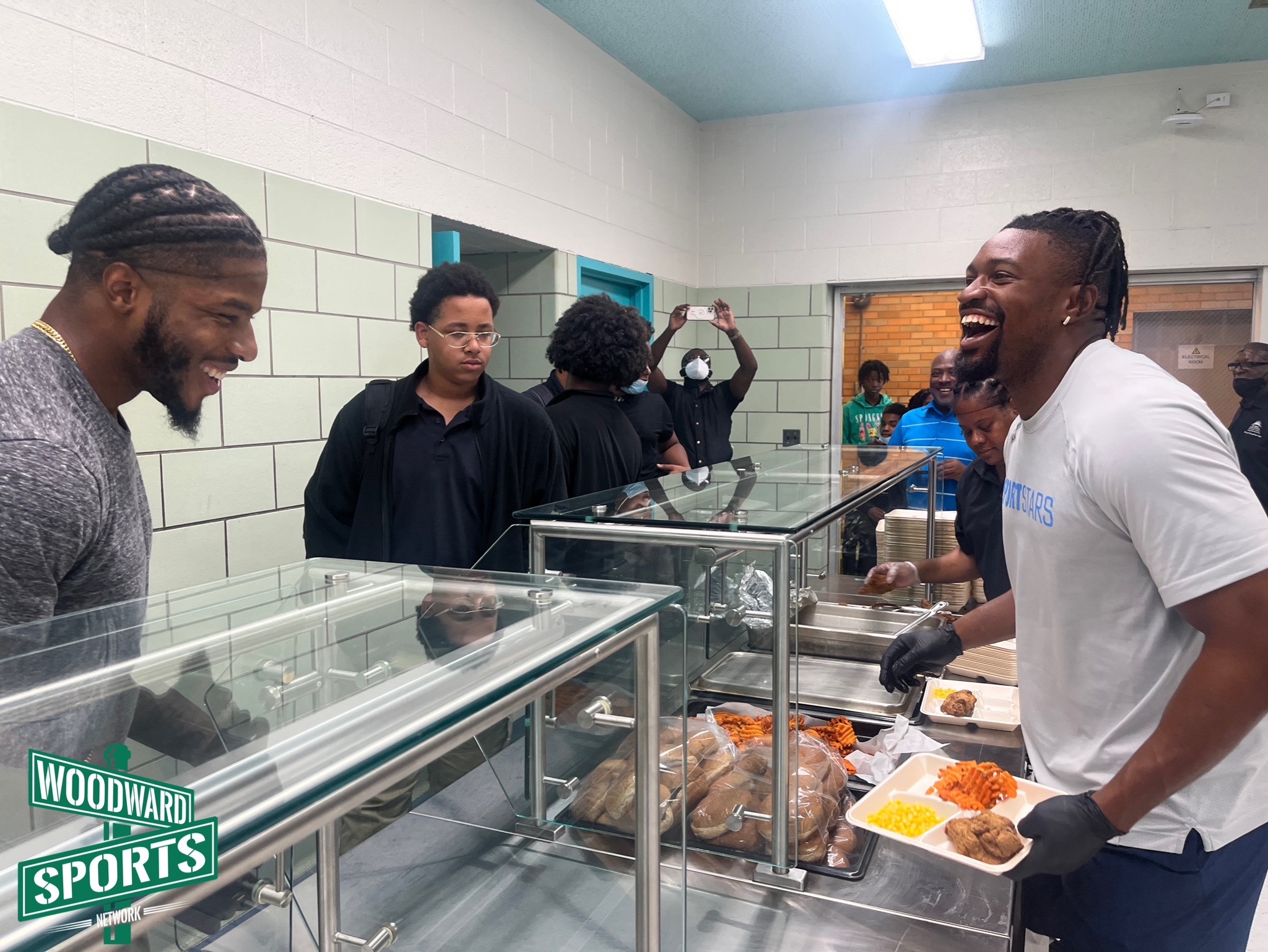 The smiles on the student’s faces as they watched two NFL football players walk into their classroom could’ve lit up a whole neighborhood. Cabinda even had the lunchroom roaring with cheers as he walked through, signaling them to get louder.