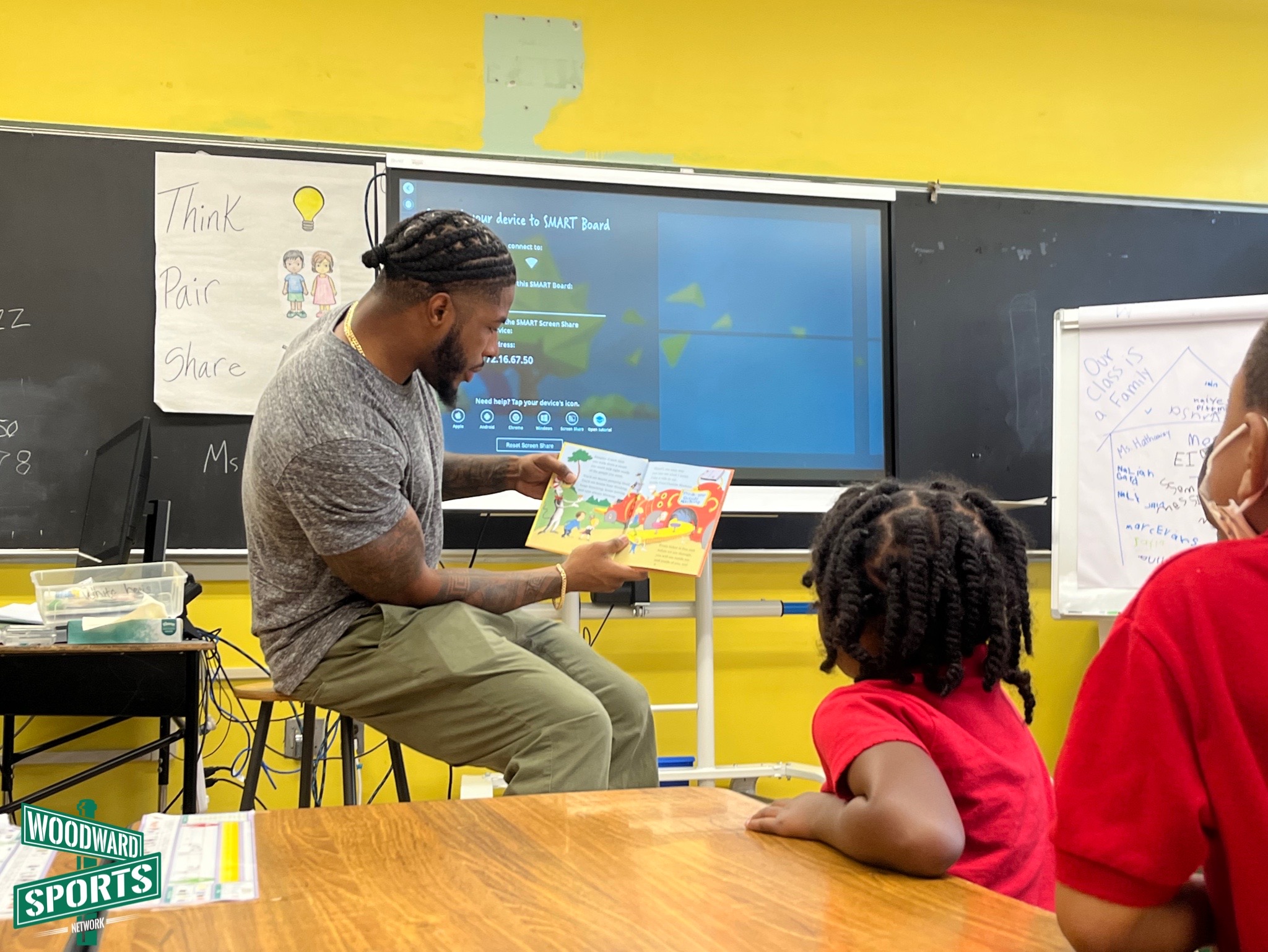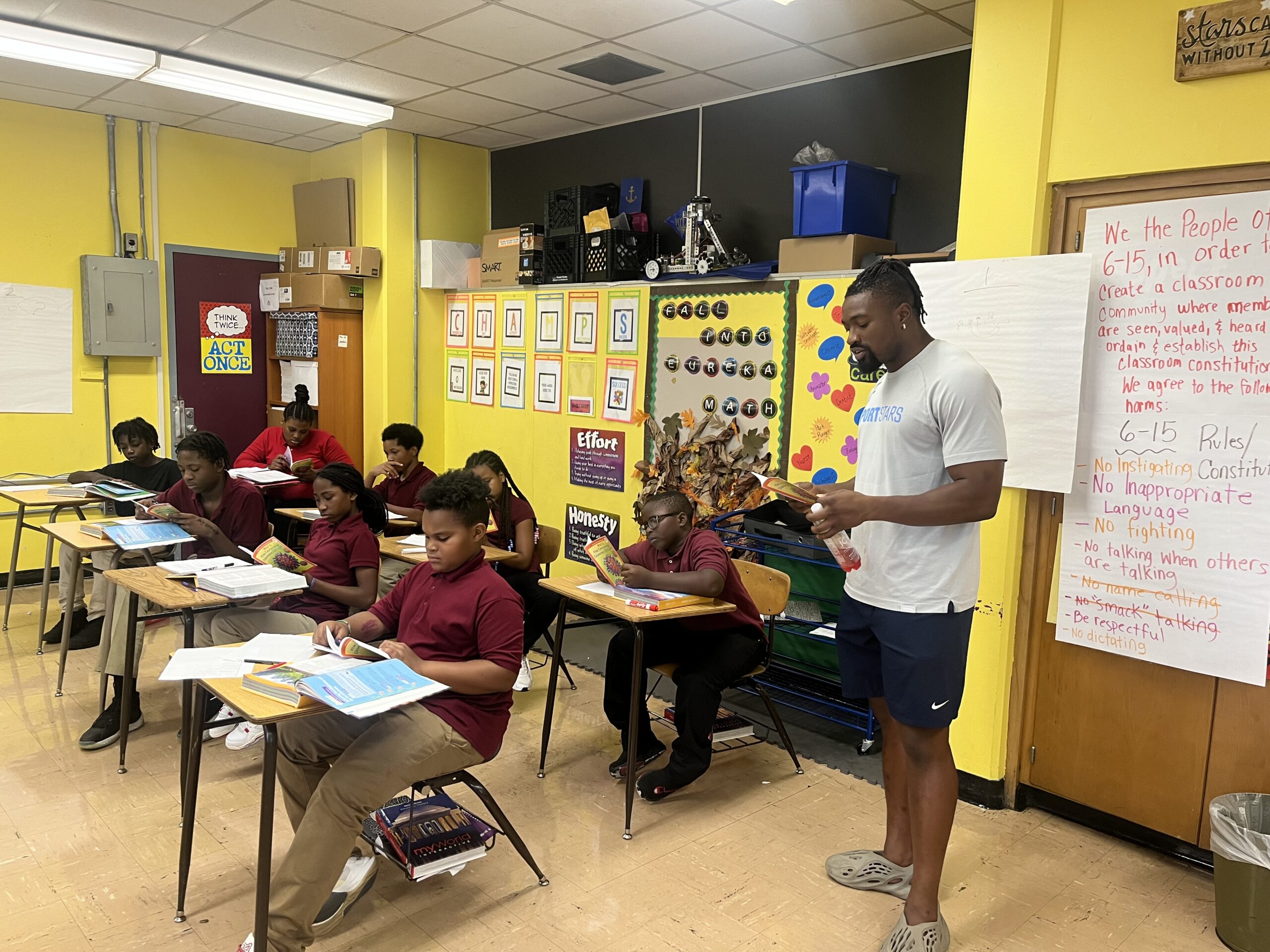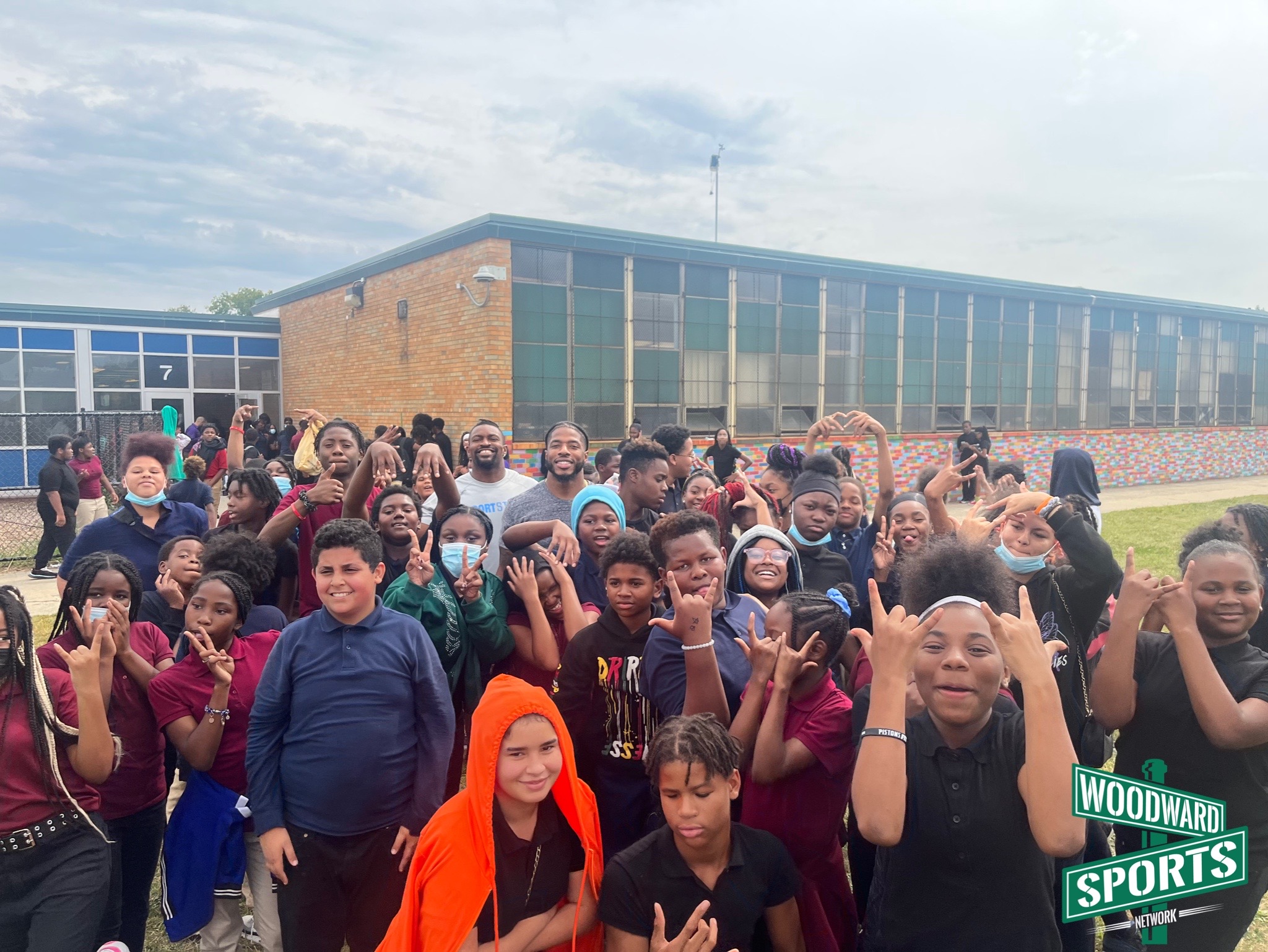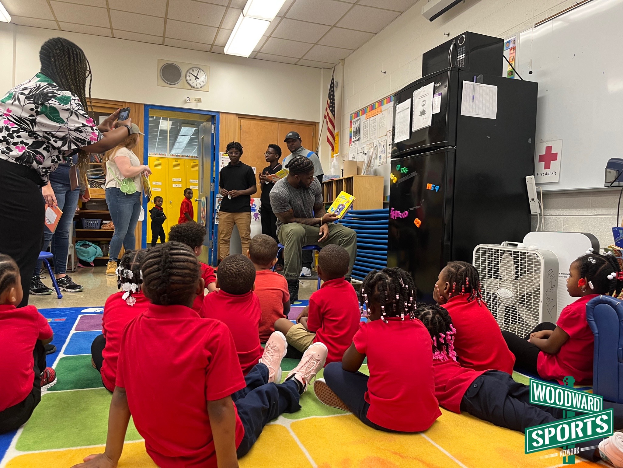 The smiles on the student’s faces as they watched two NFL football players walk into their classroom could’ve lit up a whole neighborhood. Cabinda even had the lunchroom roaring with cheers as he walked through, signaling them to get louder.