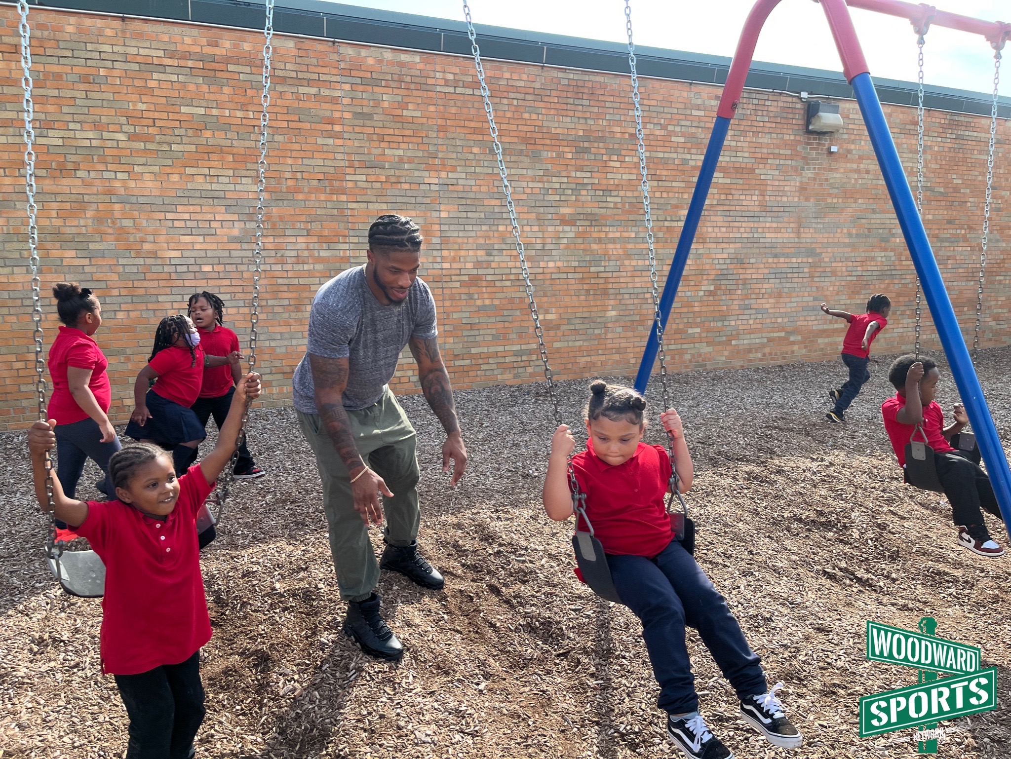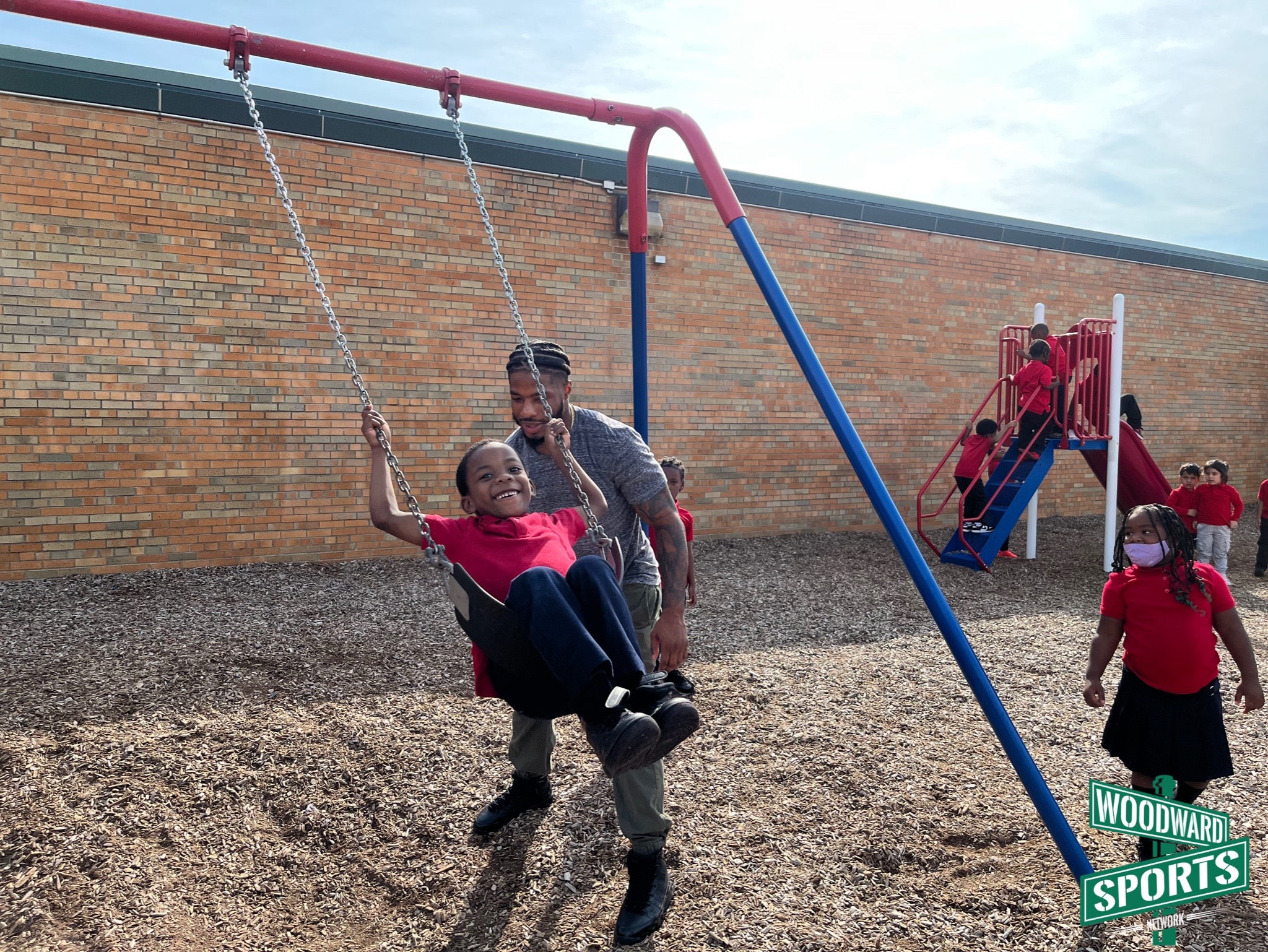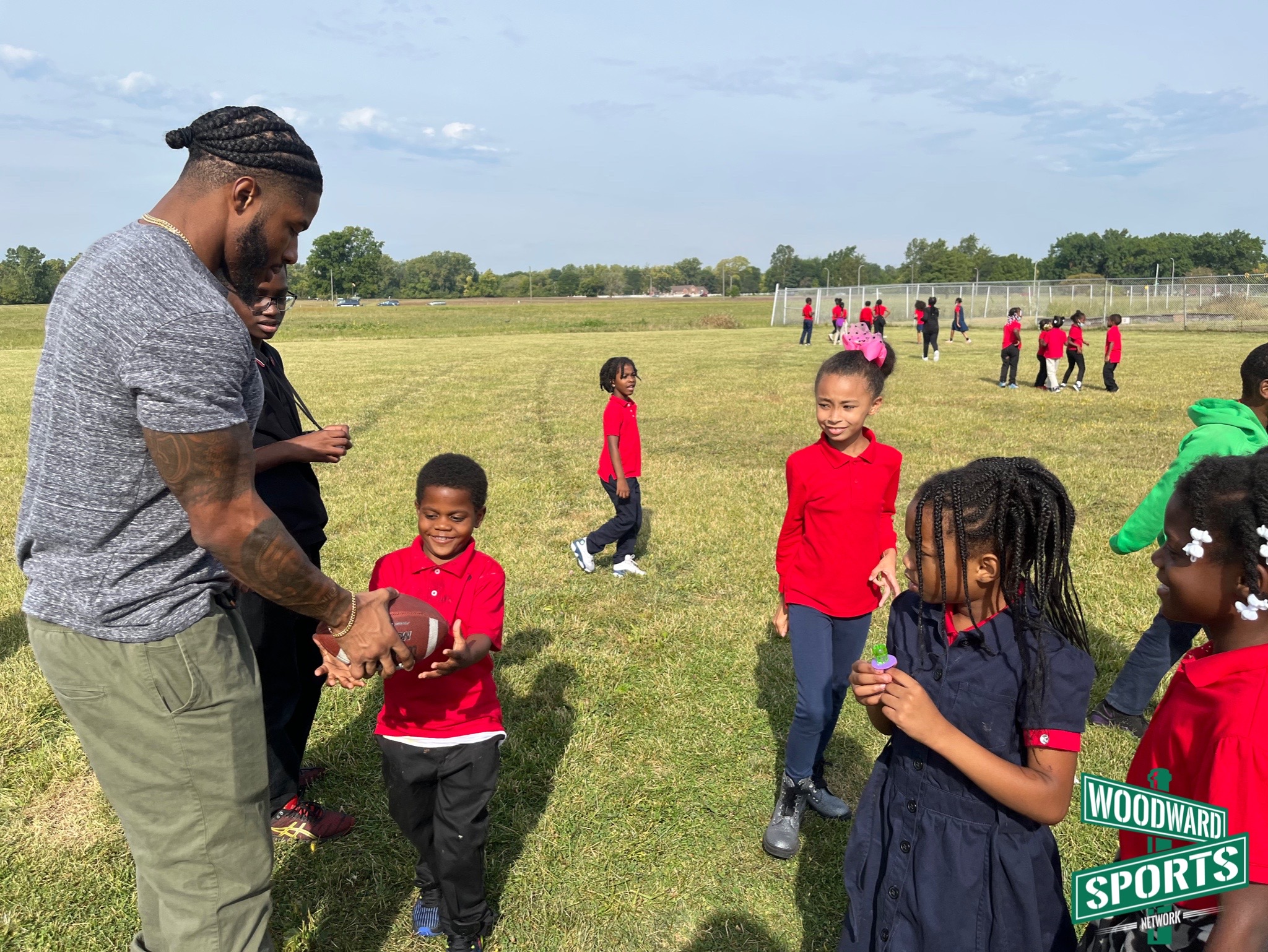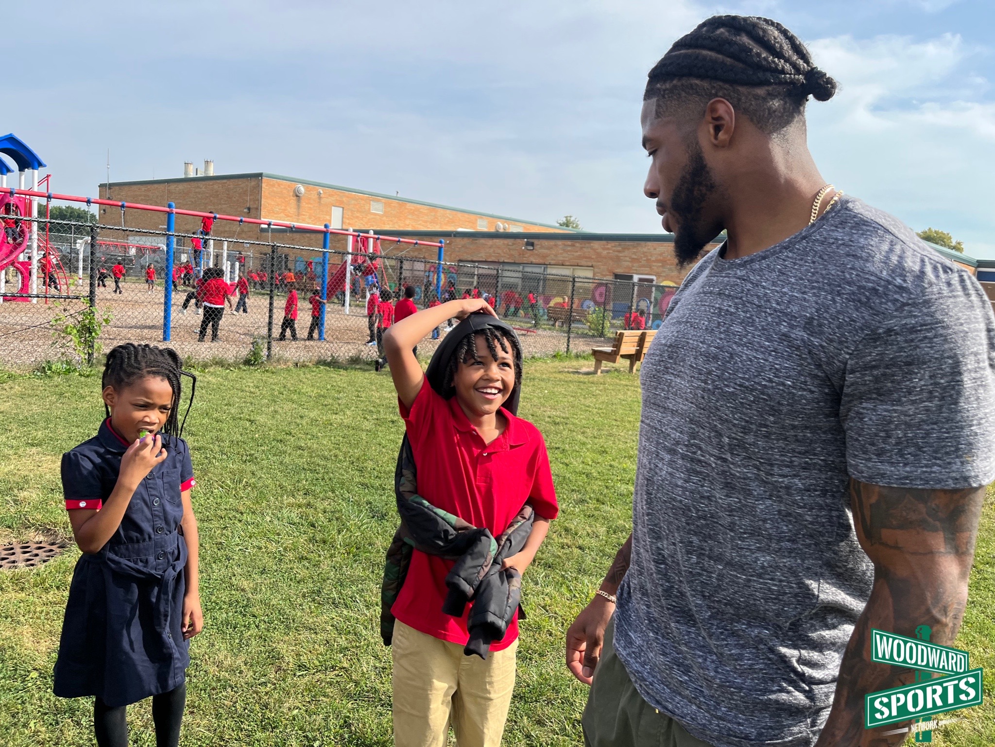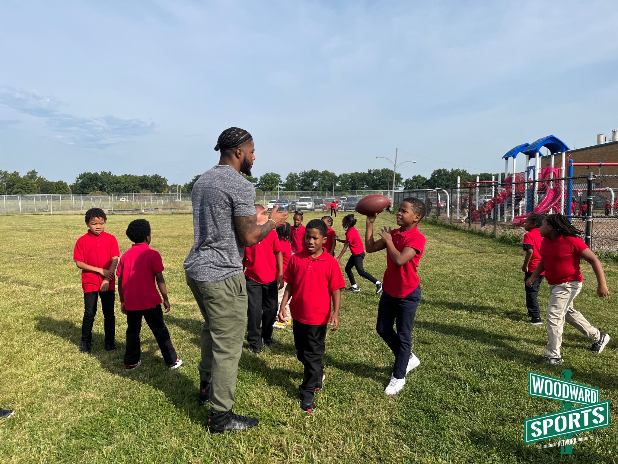 .@C_Board49 doing what he does best. Playing football with the kids at Dixon Educational Learning Academy during recess. 🏈 #Lions @A4C_ATHLETES pic.twitter.com/XJxfcfyZdj